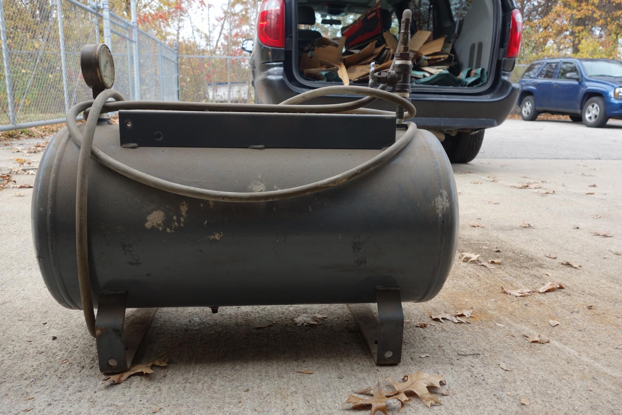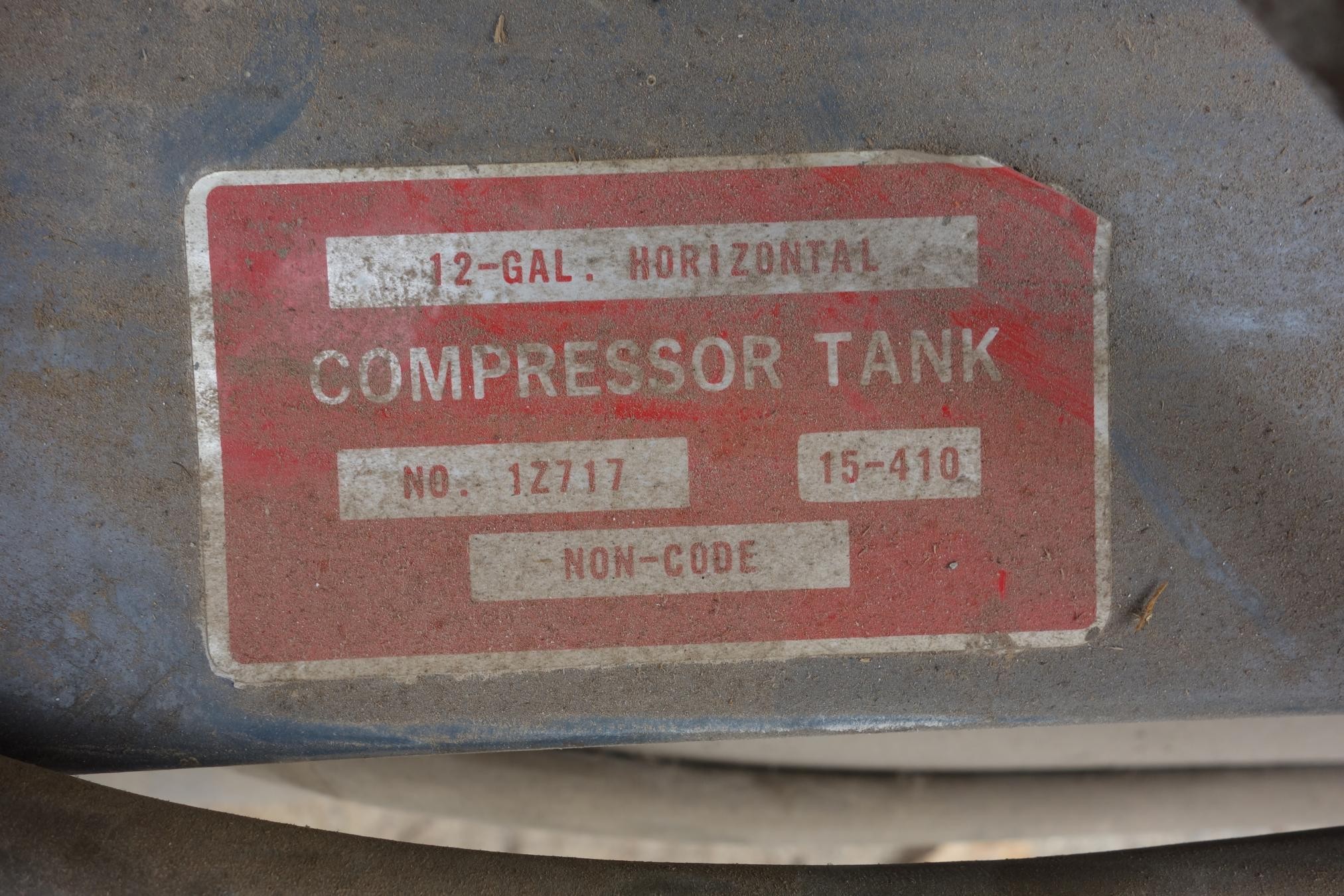 12 Gallon Air Tank 12 Gallon Air Tank Stock Status: Sold Out $100 Description 12 gallon capacity15" tall x 26" long x 12" diameterModel #1Z717Used as a portable tank, but has mounting plateon top to accommodate motor and compressor Interested? Click to contact us.
